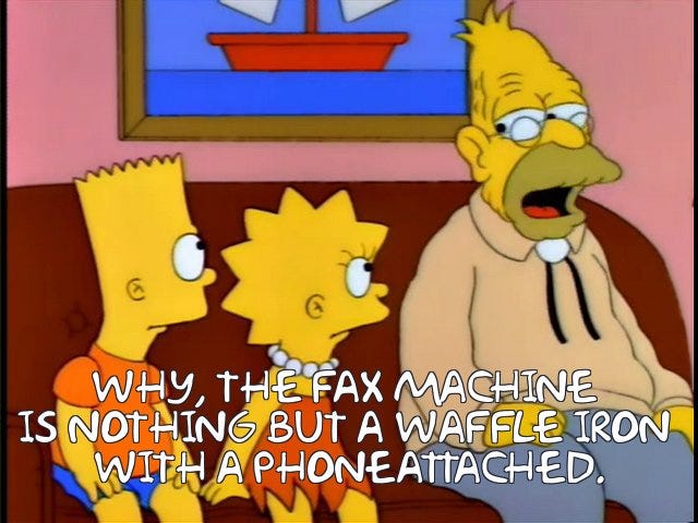 A Fax machine you ask? Those weird phone waffle irons?